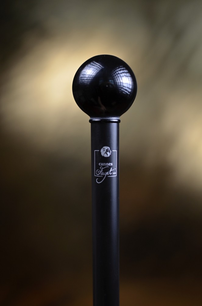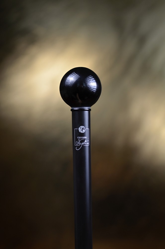 Decorative walking cane with handle shaped as a black sphere, which nicely fits into hand. We recommend using this cane as a decoration, theatre item or as a costume accessory, since it is not suited for big weight load capacity. Made by French manufacturer Fayet.