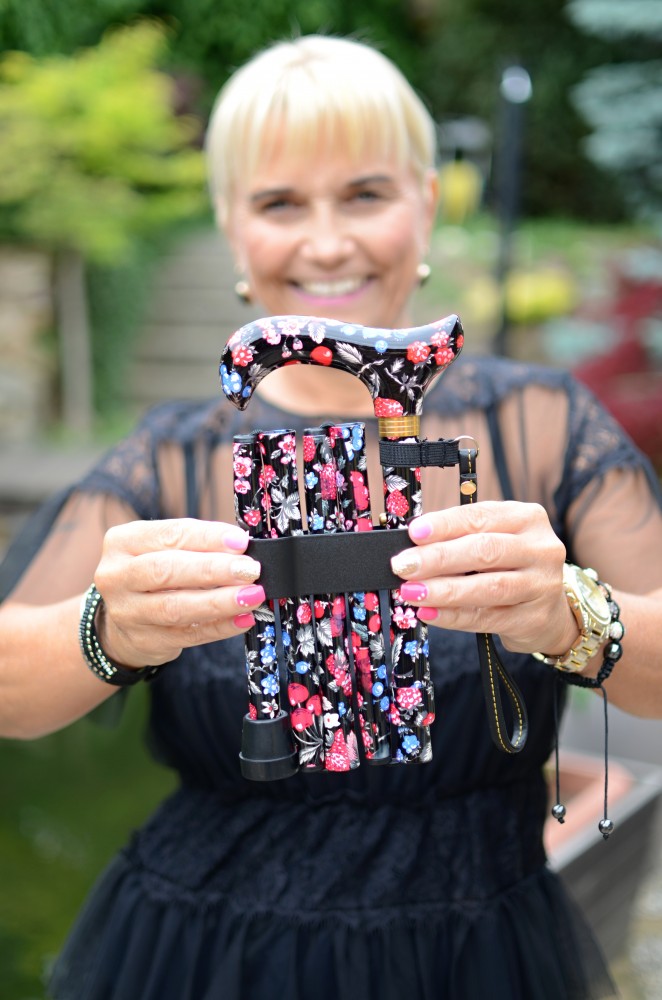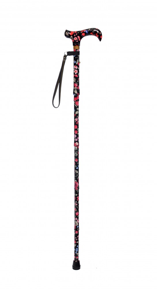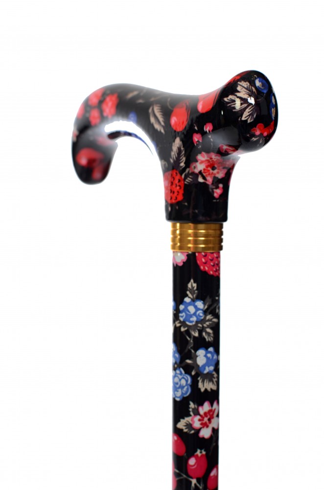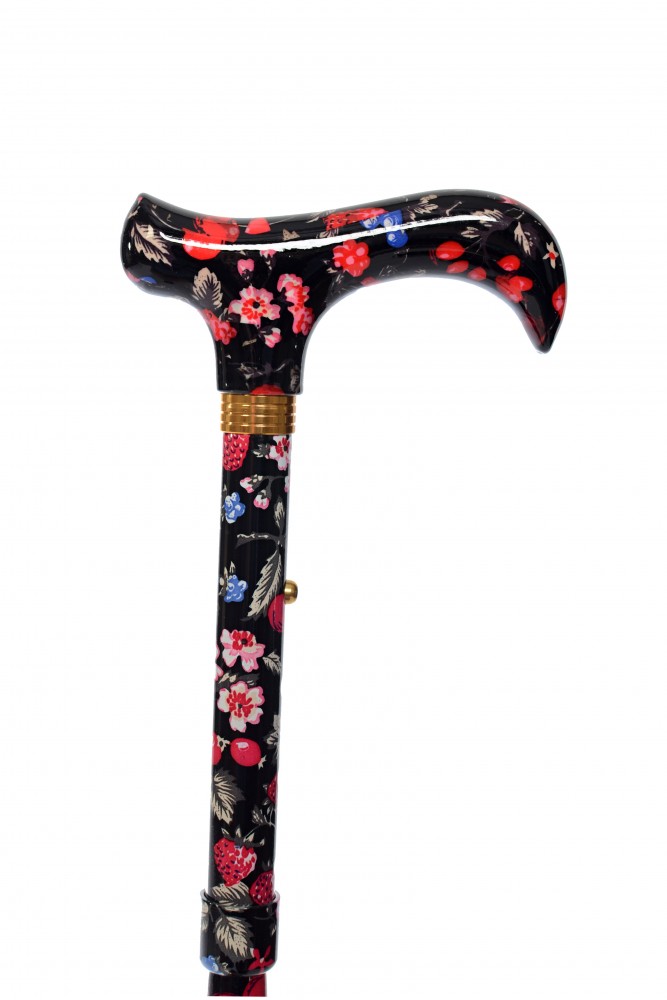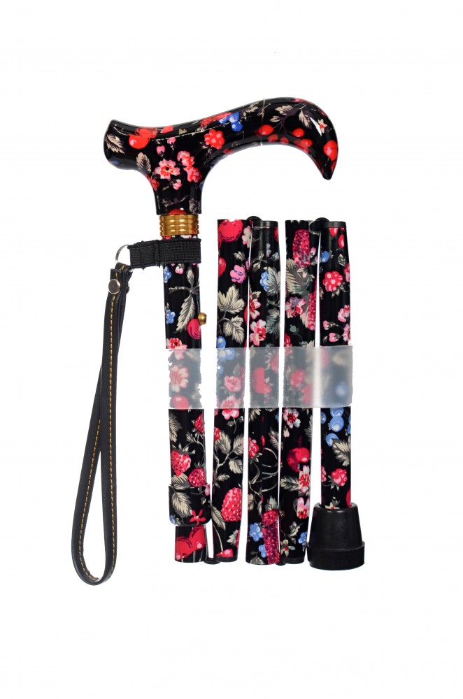 Very popular foldable walking cane in mini size, hence for small ladies. It can be folded in five parts, so it is very small and fits easily in a bag. Beautiful fruity pattern is joyful.