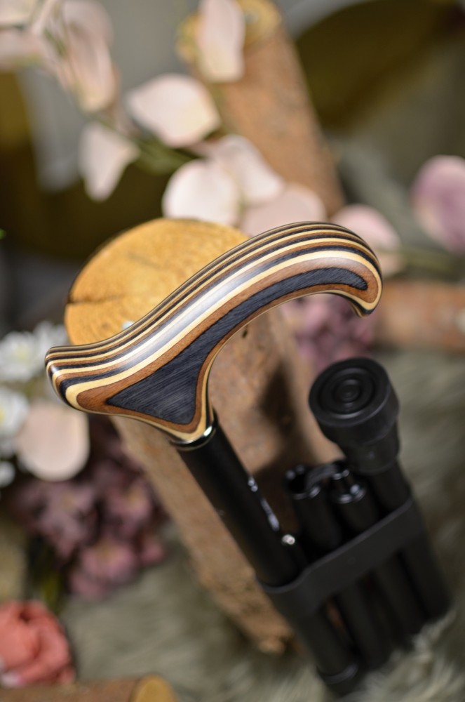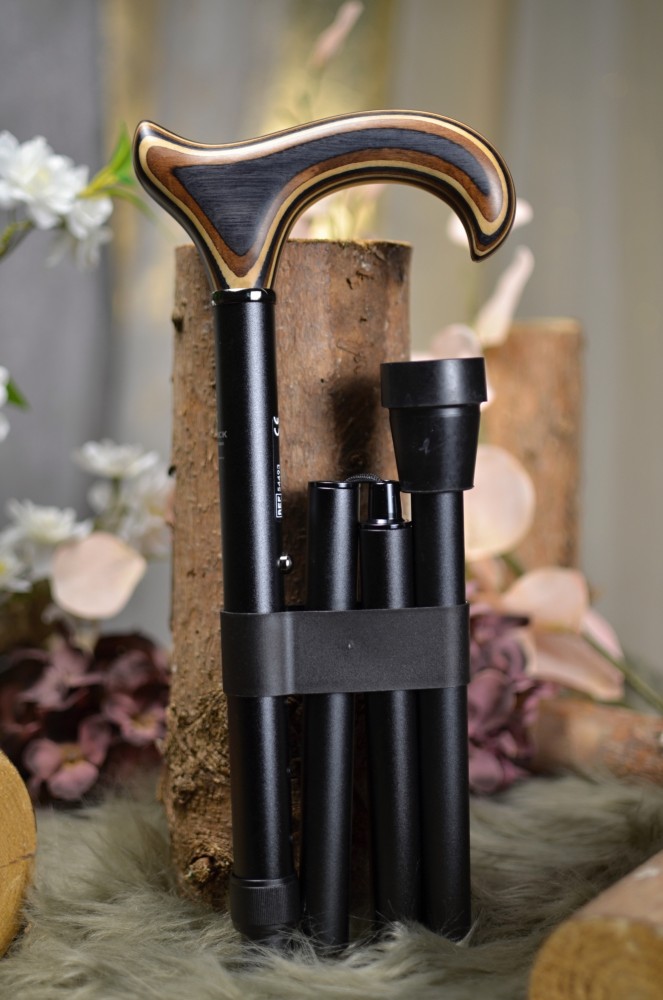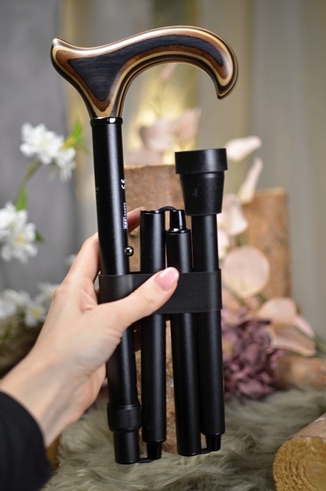 Folding walking stick from the German manufacturer Gastrock with a luxurious handle made of stained beech wood, giving it a very elegant and unobtrusive look. The stick has an increased load capacity of up to 120 kg.
