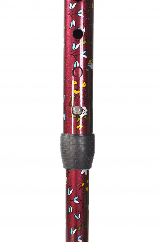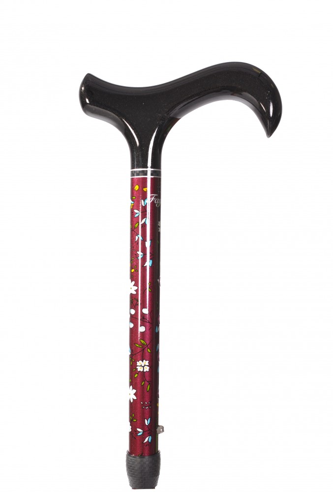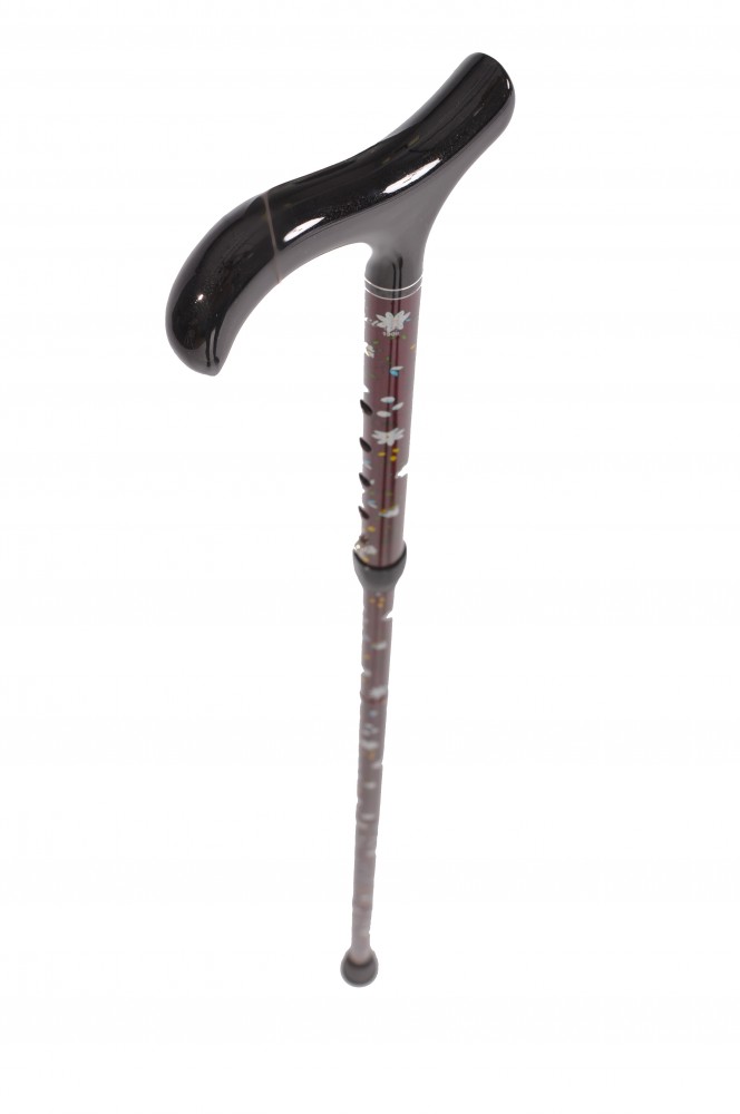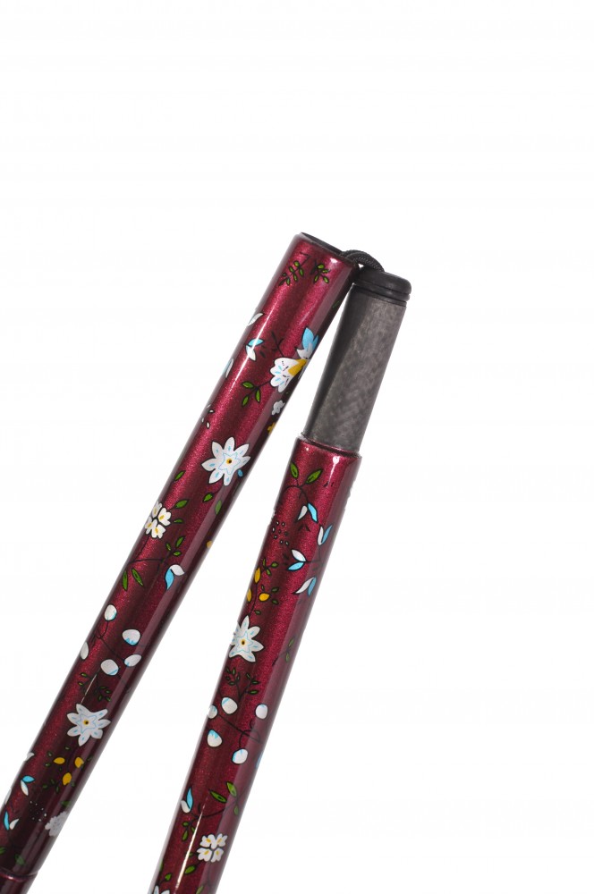 Foldable walking cane made from composite (carbon) material with delicate floral pattern by French manufacturer Fayet.