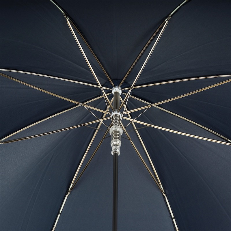 We present you an exclusive umbrella made in Italy by the prestigious Pasotti manufactory. This single-layer umbrella in dark blue is a symbol of simple elegance and timeless style. Its minimalist design is complemented by a practical roof case that protects the umbrella when not in use.