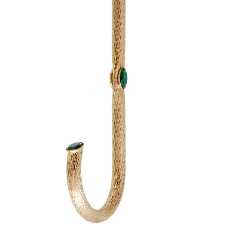 The handle of the peacock umbrella is another gem, made of brass, soft in the palm of the hand, in golden colour with ornaments for ladies and embedded with green Swarovski® crystals.
