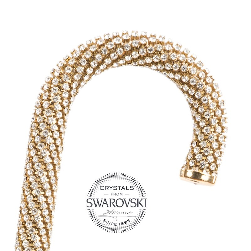 Another gem is the handle of the umbrella. It is all set with Swarovski® stones, each stone having been placed separately on the handle. It shimmers and glistens beautifully when walking in the sun. It works perfectly with light to create a large, luminous, colourful illusion.