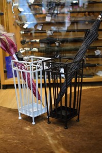 Iron stand for your umbrellas and walking canes.