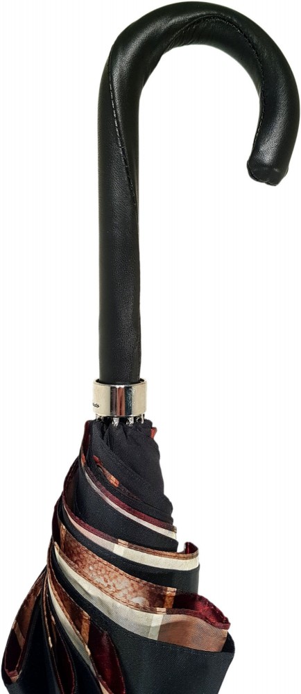 This elegant umbrella is ideal for those looking for something a little different. The umbrella has a double canopy made of the highest quality Italian polyester similar to silk. It also has a black metal frame and is finished with a beautiful black leather handle.