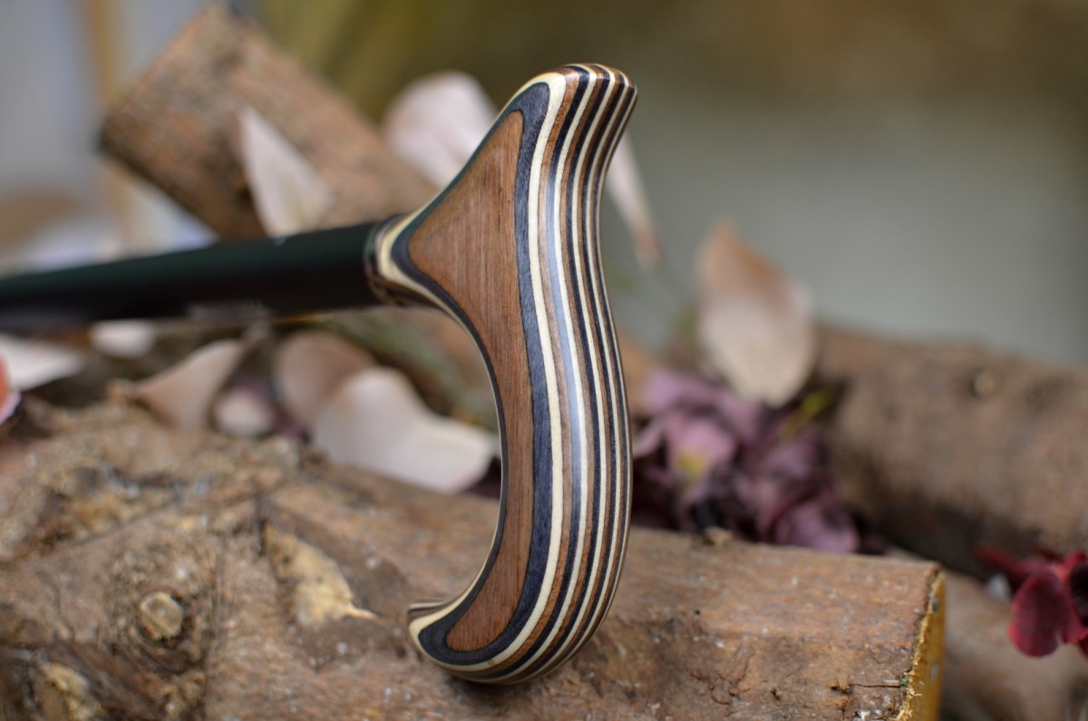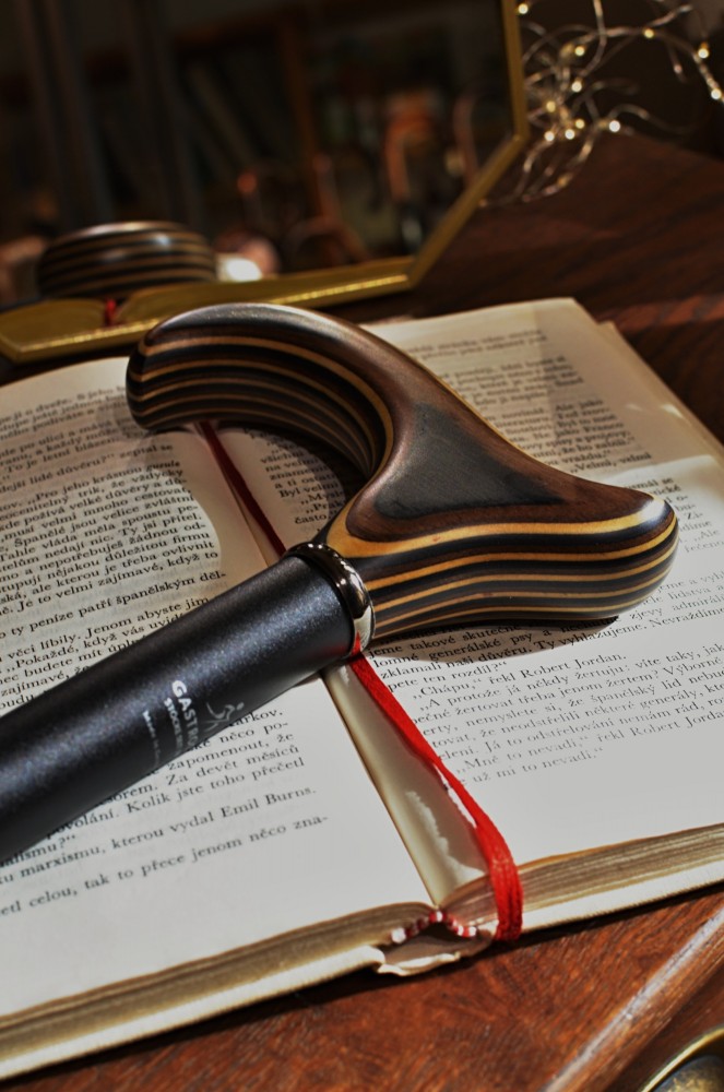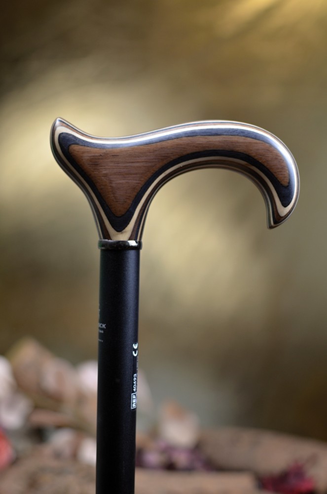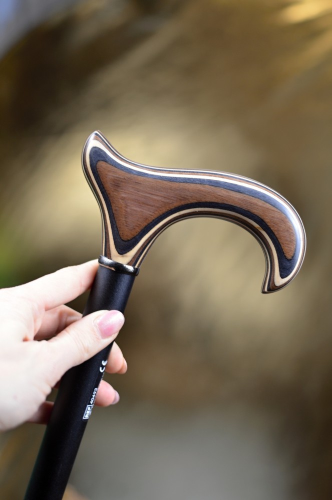 Walking cane with adjustable length and luxurious wooden handle. This cane has increased weight capacity up to 130 kg. Made in Germany.