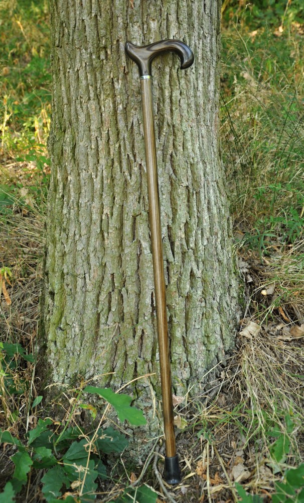 Simple wooden walking cane in darker brown colour. This cane can be shorten for a fee. Top quality made in Germany.