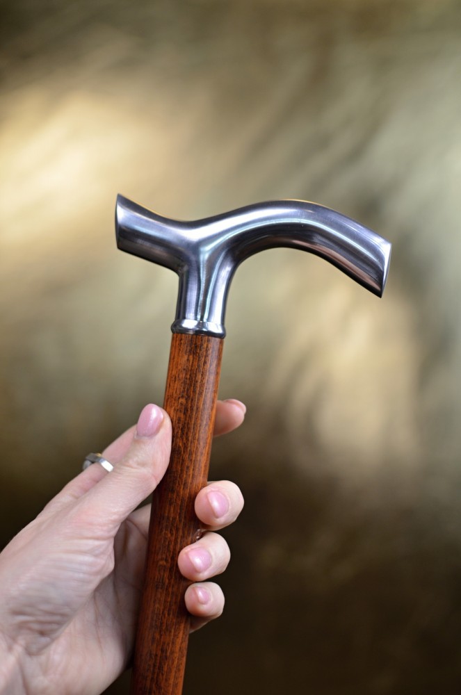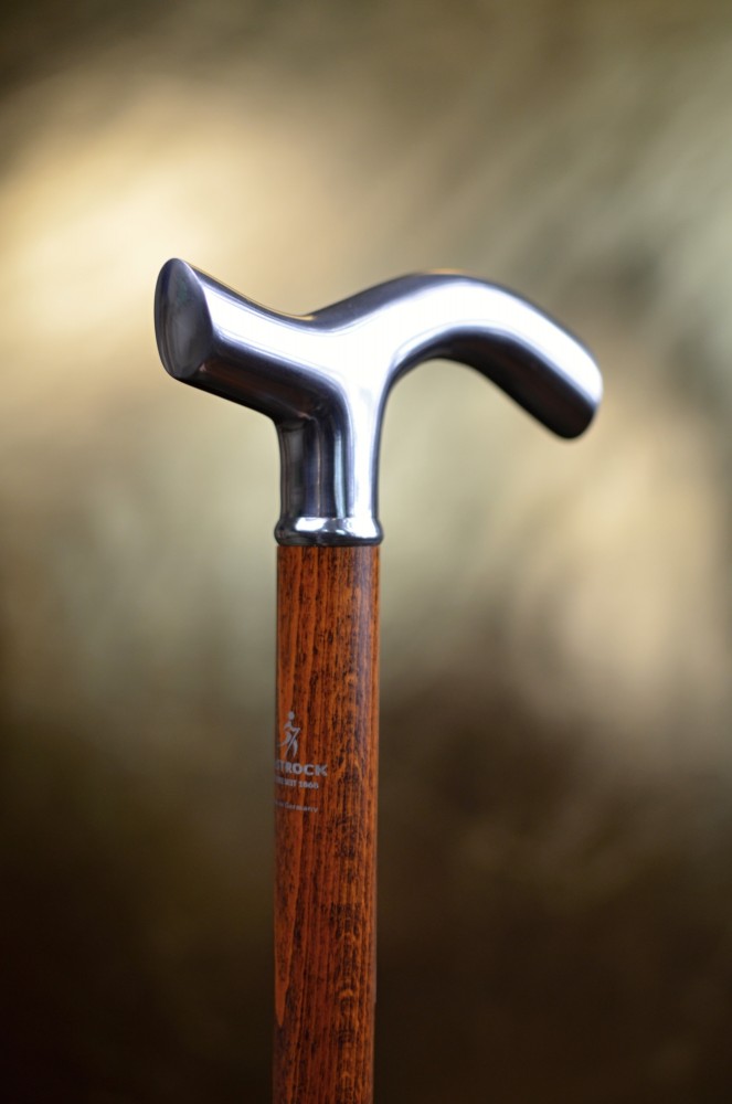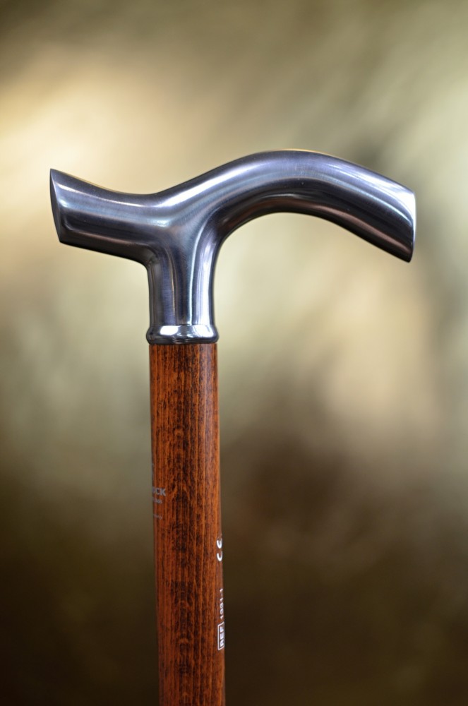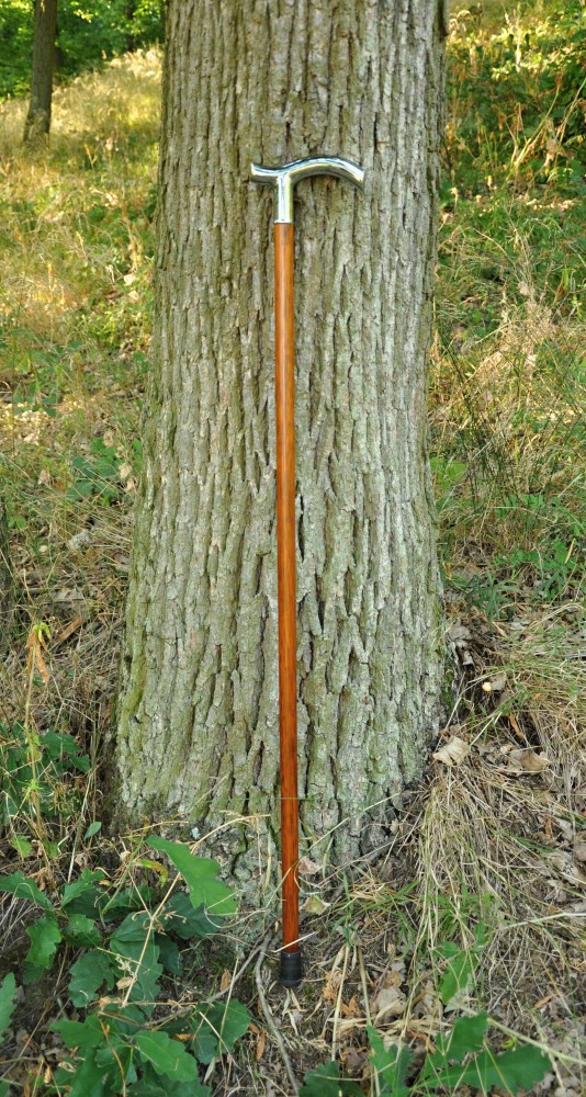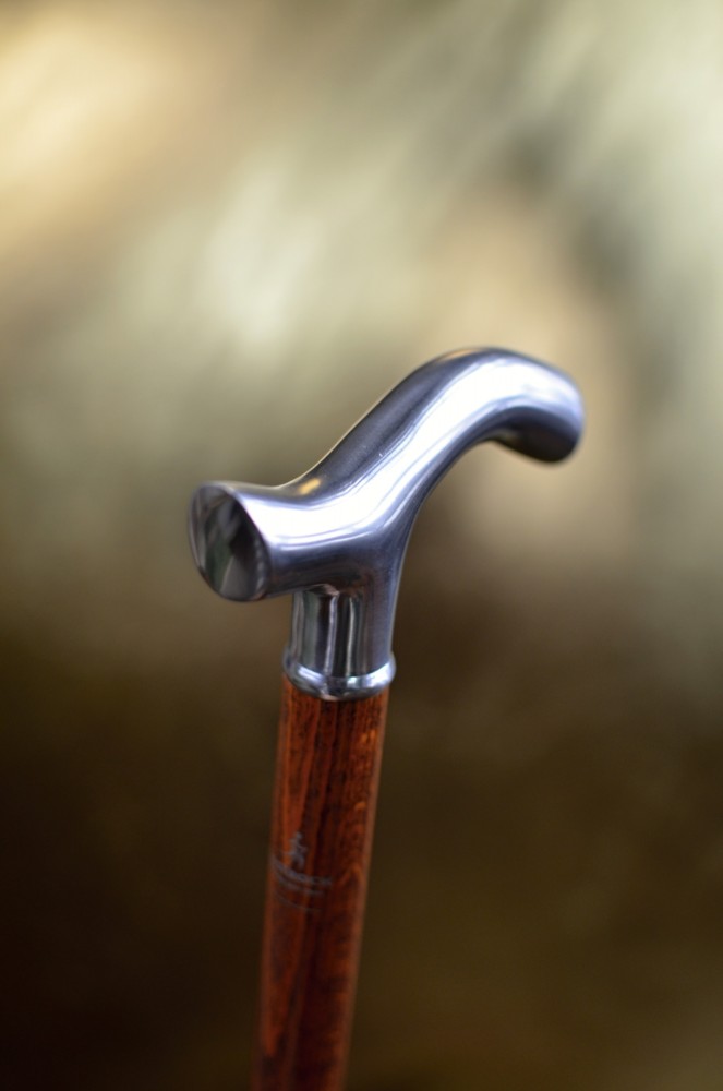 Luxury wooden walking stick with chrome handle. The cane is very light and strong, has a fixed length. The walking stick is made in Germany.
