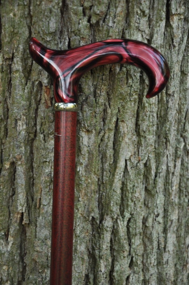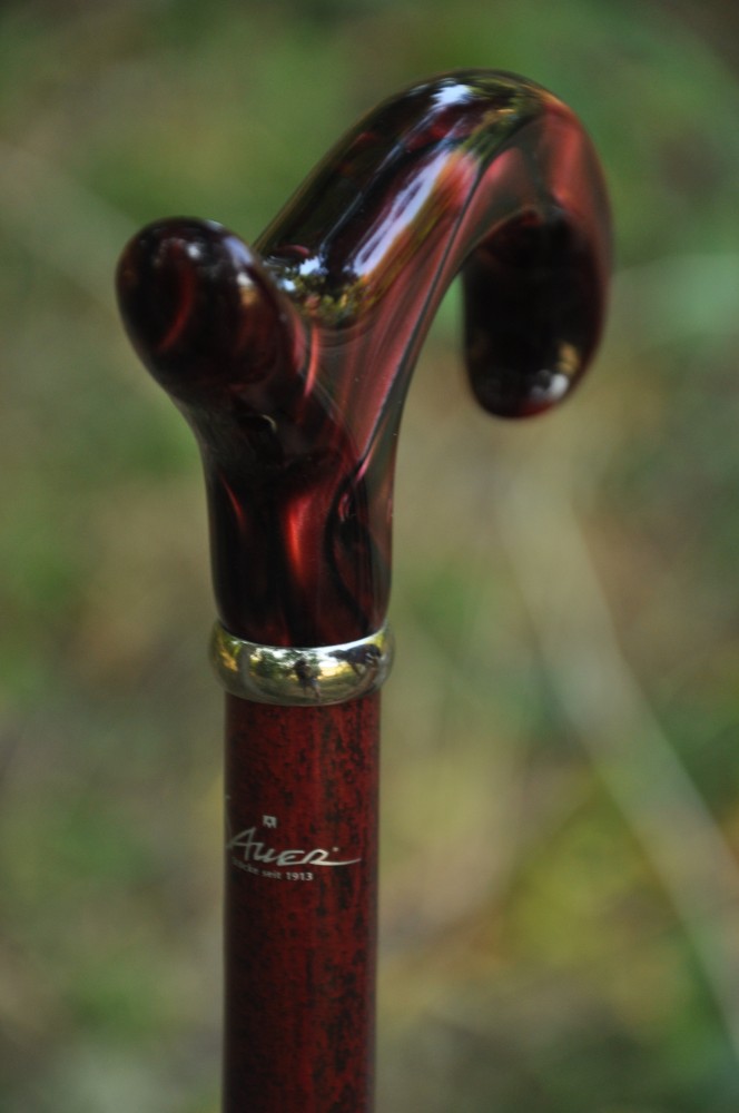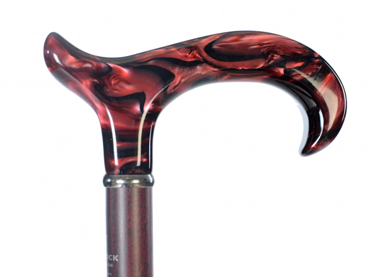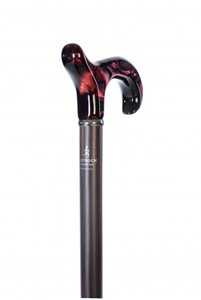 Beautiful walking cane with decorative handle with marble pattern in dark red colour. This cane can be shorten for a fee. Top quality made in Germany.