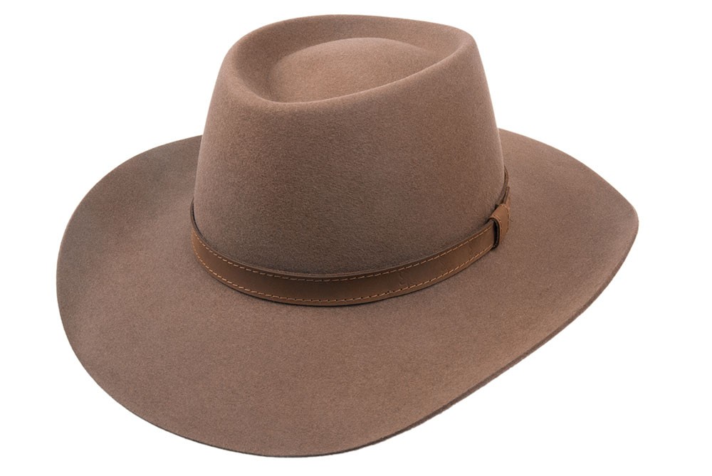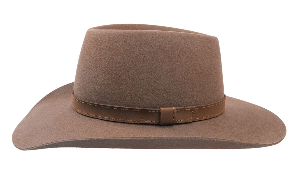 Western hat in light brown colour with decorative suede strap. This hat has sides of brim lifted up. Top quality piece made in Czech Republic.